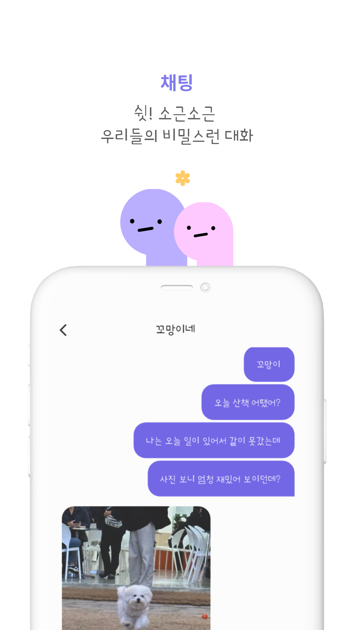 귀염뽀작한 짝꿍이 캐릭터가 함께하는 우리들만의 아지트 짝꿍 앱화면이에요!