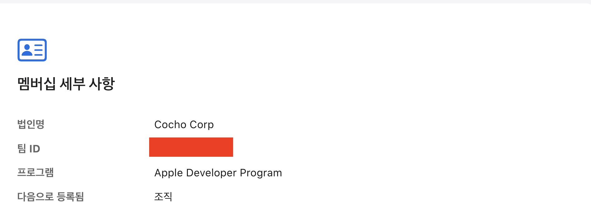 - 팀 ID 는 애플 개발자센터의 [팀 ID] 항목에서 넣으시면 됩니다. (하단 이미지 참조)