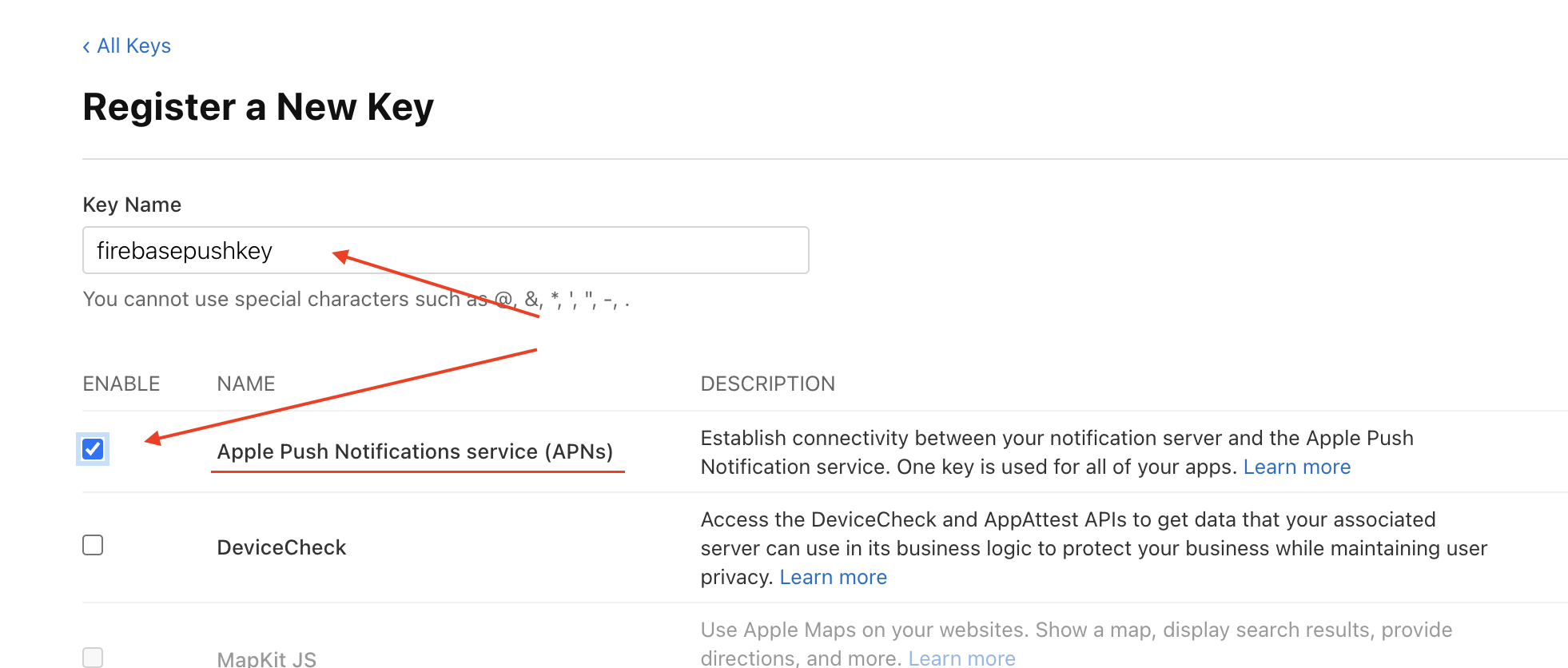 3. Firebase 프로젝트로 들어가서 APN 다운받은 키를 업로드 합니다