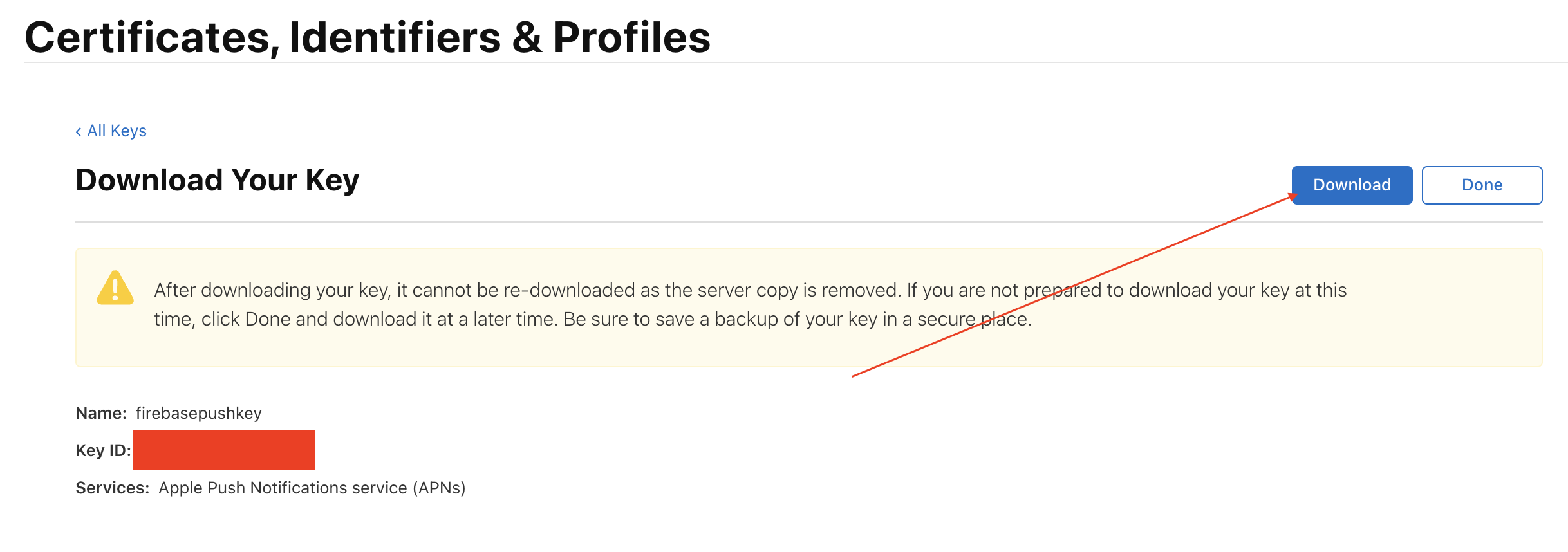 [Key ID] 항목을 기억합니다.